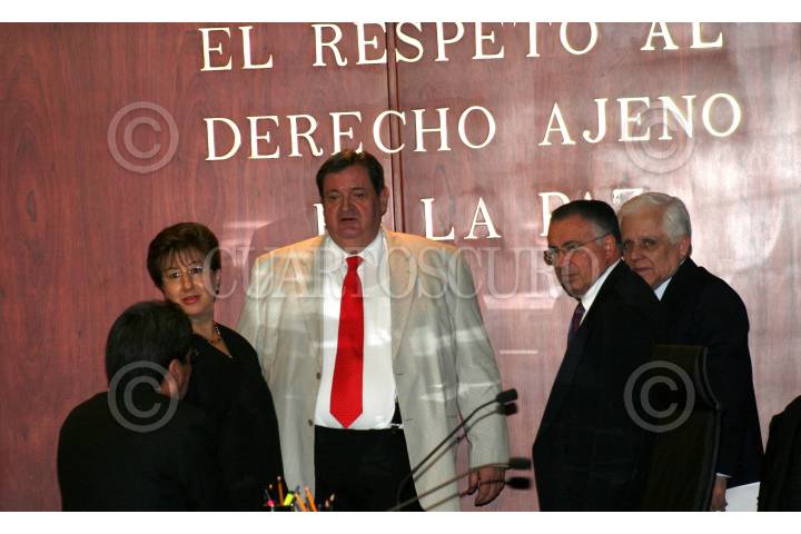 MÉXICO, D.F., 07MARZO2007.- Los ministros Margarita Luna Ramos, Salvador Aguirre, Genaro Góngora Pimentel y Mariano Azuela Huitrón, al término de la sesión de la Segunda Sala de la Suprema Corte de Justicia de la Nación, en la cual se negó un amparo a los hermanos Bribiesca Sahagún, por la supuesta extralimitación de la Cámara de Diputados al crear comisiones para investigar a sus empresas. FOTO: ISAAC ESQUIVEL/CUARTOSCURO.COM