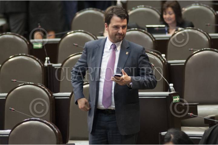 MÉXICO, D.F., 22ABRIL2014- Fernando Bribiesca Sahagún, diputado delpartido Nueva Alianza, en el salón de sesiones de la Cámara de Diputados. FOTO: IVÁN STEPHENS /CUARTOSCURO.COM