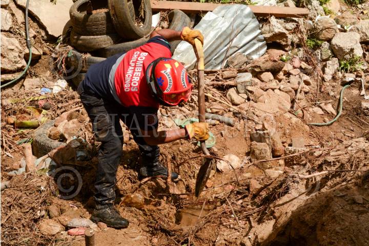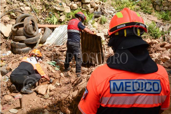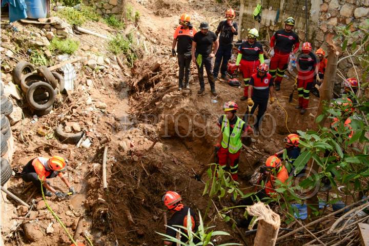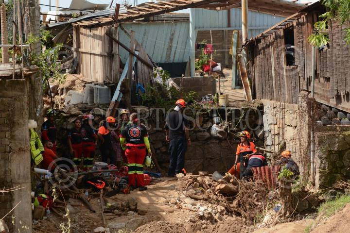 ACAPULCO, GUERRERO, 29OCTUBRE2023.- El día de ayer, la brigada de Rescate Internacional Topos México realizó trabajos de búsqueda y rescate de los cuerpos de una familia que quedo sepultada durante el huracán Otis, en la colonia Nueva Era de Acapulco. La familia vivía en la ladera de un cerro y un deslave provoco qué fueran arrastrados y sepultados, se reporta que son cinco las personas sepultadas y sólo se ha logrado el rescate de un integrante. FOTO: CARLOS ALBERTO CARBAJAL/CUARTOSCURO.COM