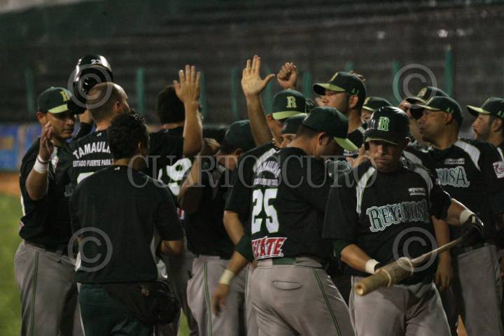 MÉXICO, D.F., 16JUNIO2011.- Willis Otañez, integrante de los Broncos de Reynosa, celebró su home run con sus compañeros, en el juego que sostuvó su escuadra contra los Diablos Rojos del México. FOTO: AGENCIA 2.8/ENRIQUE GUITÉRREZ/CUARTOSCURO.COM