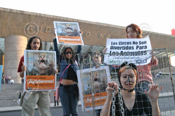 MEXICO, D.F. 24MARZO2005.- Integrantes de la PETA, personas por la ética en el trato de los animales, protestaron frente al Auditorio Nacional, durante la presentación del circo Ringling Brothers. FOTO: Sandra Perdomo/CUARTOSCURO.COM