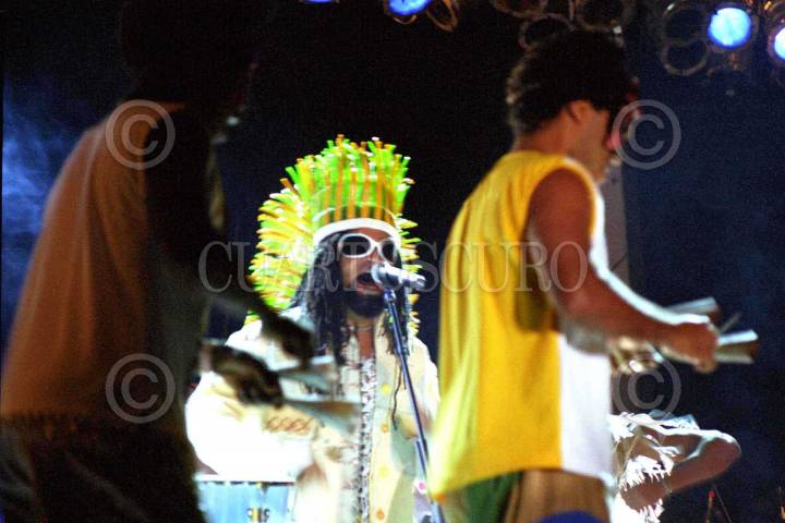El músico brasileño Carlinhos Brown se presentó la noche de ayer en la Concha acústica del Agua Azul en el marco de la XV Feria Internacional del libro de Guadalajara. FOTO:Natalia Fregoso/CUARTOSCURO.COM