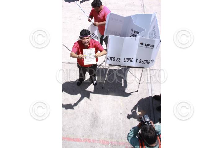 MÉXICO, D.F., 05JULIO2009.-El candidato para jefe delegacionalpor el PT Rafael Acosta " Juanito" emitio su voto esta mañana acompañado por Clara Brugada FOTO:SÁSHENKA GUTIÉRREZ/CUARTOSCURO.COM