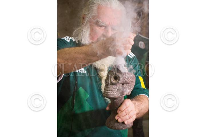 CIUDAD DE MÉXICO, 21JUNIO2018.- El Brujo Mayor, realizo un ritual esotérico de buenas vibras para que la selección nacional del Fútbol se imponga a su similar de Corea del Sur, este sabado en el Mudial de Rusia. Reitero que José Antonio Meade, abanderado del PRI a la presidencia de la República, será el triunfador de los comision del 1 de julio. FOTO: VICTORIA VALTIERRA /CUARTOSCURO.COM
