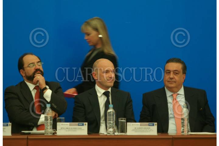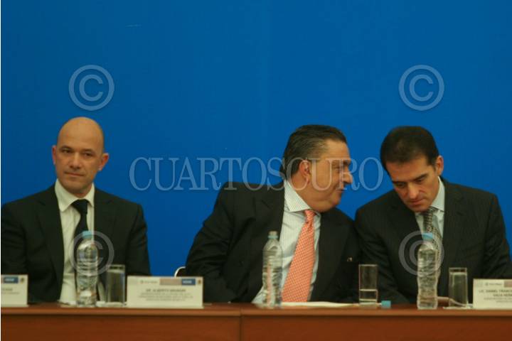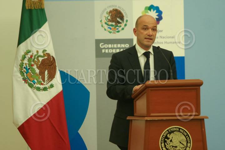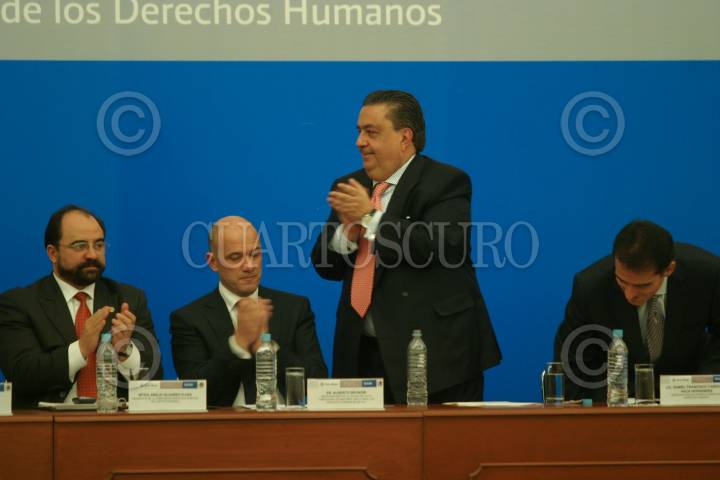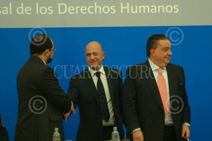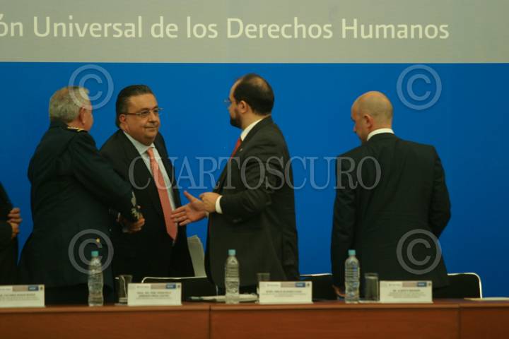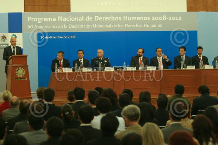 MÉXICO, D.F., 10DICIEMBRE2008.- Alberto Bruni Representante de la oficina de alto comisionado de Naciones Unidas para los Derechos Humanos en México, Fernando Gomez Mont Secretario de gobernación, Daniel Cabeza de Vaca durante la presentación del programa Nacional de Derechos Humanos 2008-2012 FOTO: SÁSHENKA GUTIÉRREZ/CUARTOSCURO.COM