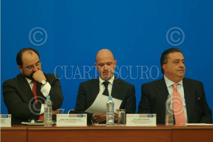 MÉXICO, D.F., 10DICIEMBRE2008.- Emilio Álvarez Icaza Titulade de Derechos Humanos, Alberto Bruni Representante de la oficina de alto comisionado de Naciones Unidas para los Derechos Humanos en México, Fernando Gomez Mont Secretario de gobernación, durante la presentación del programa Nacional de Derechos Humanos 2008-2012 FOTO: SÁSHENKA GUTIÉRREZ/CUARTOSCURO.COM