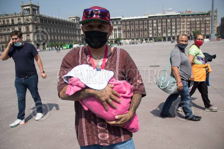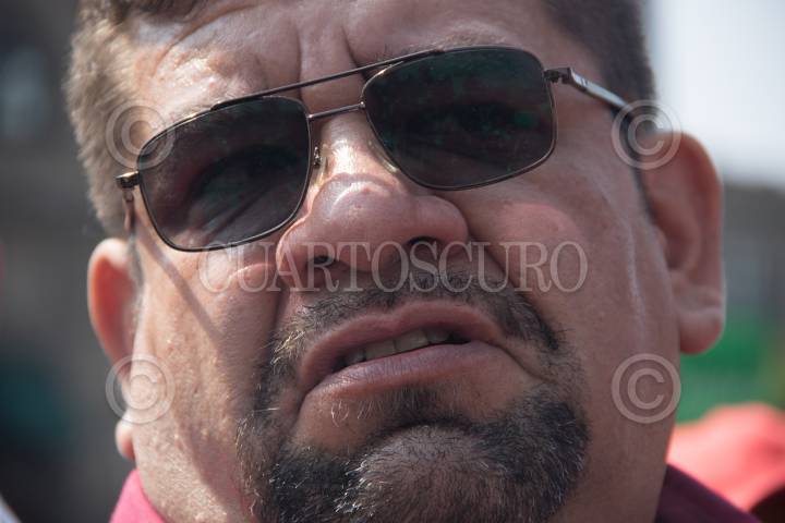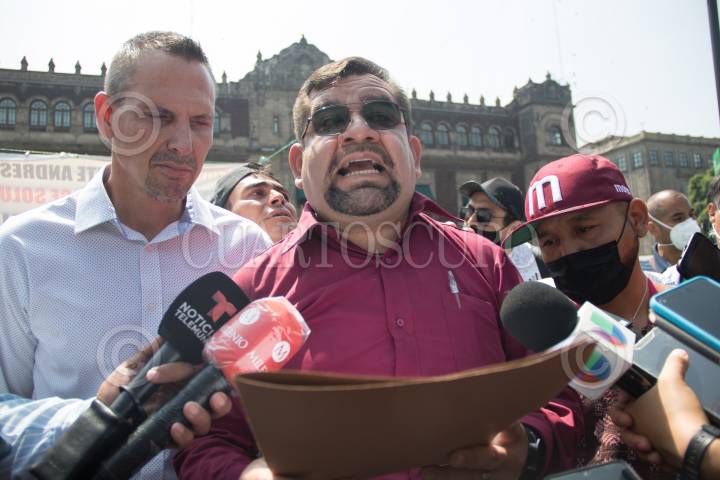 Pedro César Carrizales "El Mijis" durante el inicio de la huelga de hambre por Manuel Germán Ramírez Valdovinos en el Zócalo.