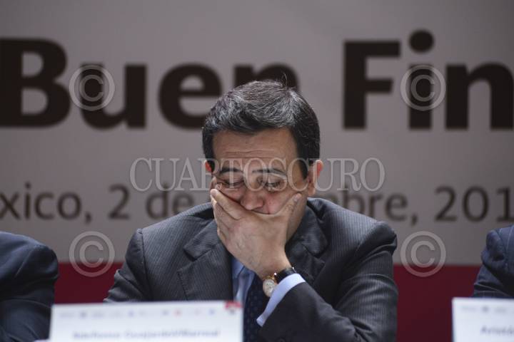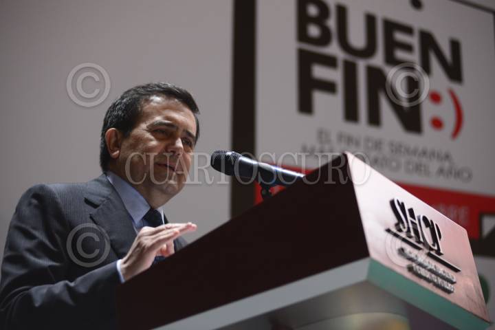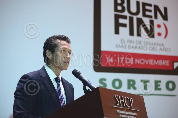 MÉXICO, D.F., 02DICIEMBRE2014.-Ildefonso Guajardo Villarreal secretario de Economía, en el marco del sorteo anual del Buen Fin donde se premia a todas la personas que consumieron en tiendas departamentales en el fin de semana del 14 al 17 de noviembre de este año, en el que habrá 149 mil ganadores y 500 millones en premios. El nombre de los ganadores se dará a conocer el próximo 5 de diciembre en la pagina web del SAT. FOTO: ISABEL MATEOS /CUARTOSCURO.COM