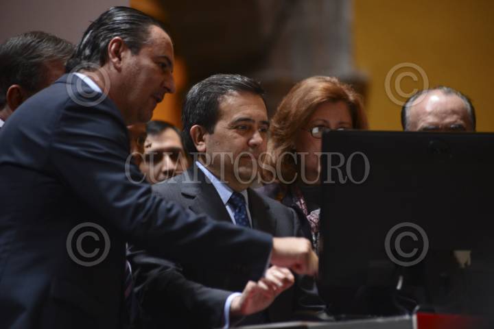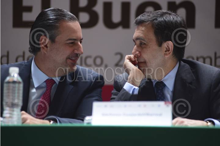 MÉXICO, D.F., 02DICIEMBRE2014.-Gerardo Gutiérrez Candiani e Ildefonso Guajardo Villarreal Secretario de Economía, en el marco del sorteo anual del Buen Fin donde se premia a todas la personas que consumieron en tiendas departamentales en el fin de semana del 14 al 17 de noviembre de este año, en el que habrá 149 mil ganadores y 500 millones en premios. El nombre de los ganadores se dará a conocer el próximo 5 de diciembre en la pagina web del SAT. FOTO: ISABEL MATEOS /CUARTOSCURO.COM