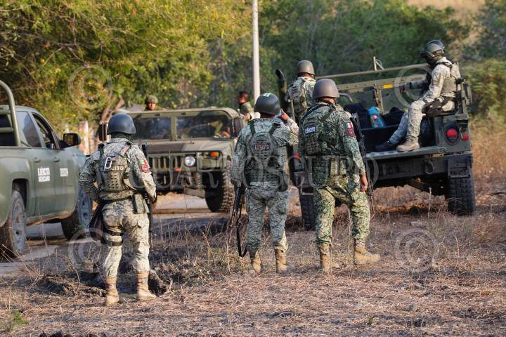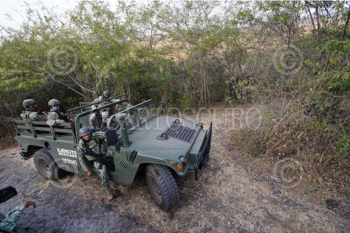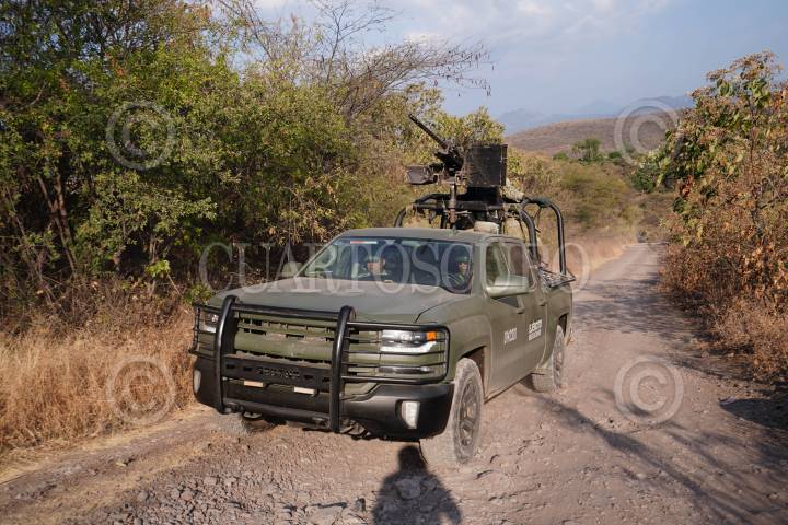 BUENAVISTA, MICHOACÁN, 18DICIEMBRE2024.- Dos soldados adscritos a la 43 Zona Militar murieron anoche tras la explosión de una mina terrestre, de fabricación casera, en un supuesto campo minado ubicado en los límites de los municipios de Buenavista Tomatlán y Apatzingán, en la región de Tierra Caliente. De acuerdo con una fuente de la Guardia Civil, Policía Estatal de Michoacán, la nueva explosión ocurrió anoche en un camino de terracería de la comunidad Paredes del Ahogado, en Buenavista Tomatlán, donde los militares buscaban células de sicarios. FOTO: JUAN JOSÉ ESTRADA SERAFÍN/ CUARTOSCURO.COM