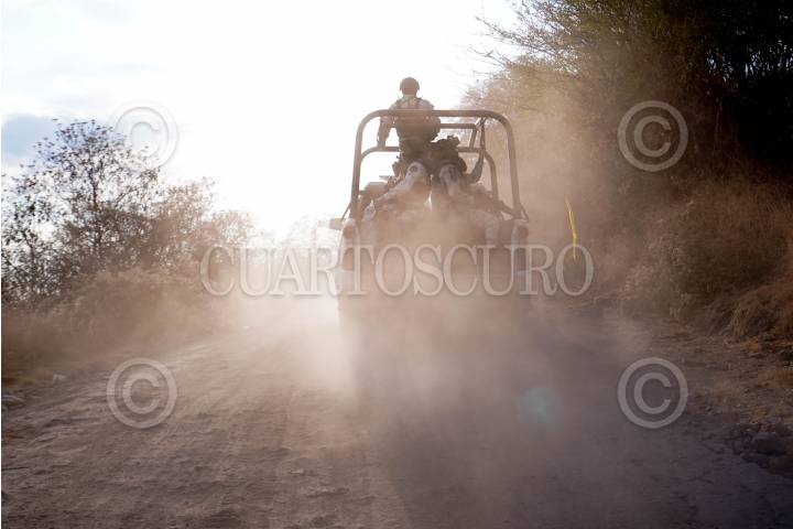 El Aguaje es la base de operación para la pacificación en Tierra Caliente del estado. El pueblo que ha sido atacado y afectado por la violencia y la guerra entre los grupos de la delincuencia organizada ahora está lleno de elementos del Ejército Mexicano.