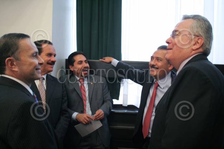 MÉXICO, D.F., 01FEBRERO2011.- Los senadores Fernando Castro Trenti, Juan Bueno Torio, Ruben Camarillo Ortega, Manlio Fabio Beltrones y Javier Castelo Parada, antes del inicio de la primera sesión ordinario en el Senado de la República. FOTO: MOISÉS PABLO/CUARTOSCURO.COM