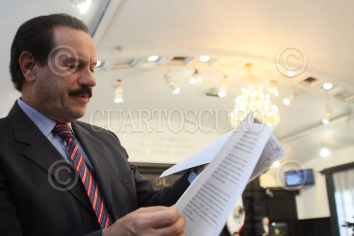 MÉXICO, D.F., 22MARZO2011.- El panista Juan Bueno Torio, presentó una iniciativa de reforma para abrir a Petróleos Mexicanos a la inversión privada. De acuerdo con el legislador lo que se busca es la incorporación de inversión social y privada en los procesos de refinación así como en la logística de abasto y suministro de combustible, aunque aclara que de ninguna forma se perderán derechos sobre el petróleo: “El cambio más importante es la certidumbre de que la inclusión de recursos financieros ajenos al presupuesto federal no implica pérdida de soberanía sobre nuestros recursos naturales”. FOTO: MOISÉS PABLO/CUARTOSCURO.COM