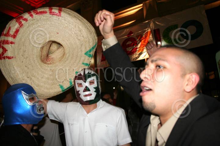 BUENOS AIRES, ARGENTINA, 10JUNIO2012.- Poco más de 50 personas se reunieron hoy frente a la casa de gobierno de Argentina, en apoyo al movimiento #yosoy132 en la plaza de mayo. FOTO: MARIA VALTIERRA /CUARTOSCURO.COM