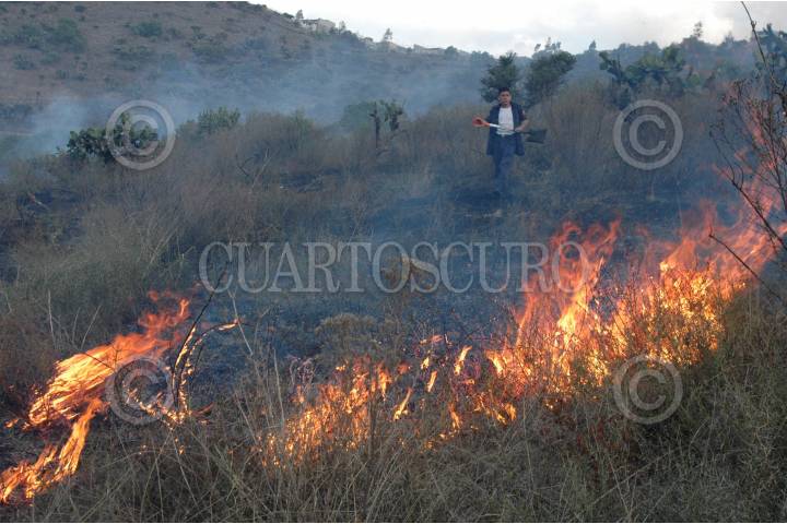 ECATEPEC, ESTADO DE MÉXICO 14JUNIO2009.- Debido a las altas temperaturas se produjo fuego en la Sierra de Guadalupe, a la altura de la colonia Buenos Aires y Colinas de Ecatepec, el incendio arrasó con tres hectáreas de bosque, dos horas después fue controlado por los bomberos de estación Zapata FOTO: MARIO NULO/CUARTOSCURO.COM