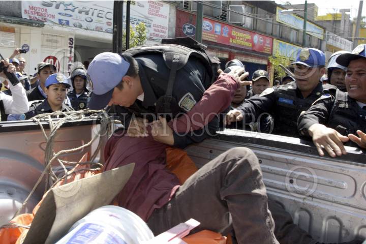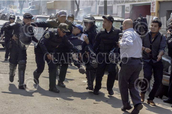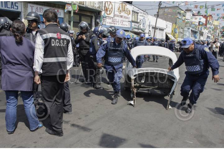 MÉXICO, D.F., 19FEBRERO2014.- Un total de tres policías heridos, dos personas remitidas al Ministerio Público y una al Juzgado Cívico, así como 19 autos llevados al corralón, fue el saldo de un operativo realizado esta tarde en la colonia Buenos Aires. En los hechos ocurridos en las calles de Doctor Andrade y Doctor Bolaños, resultó herido en una pierna un policía de Cuauhtémoc, así como otros dos elementos de la SSPDF con lesiones en manos y piernas. FOTO: CUARTOSCURO.COM
