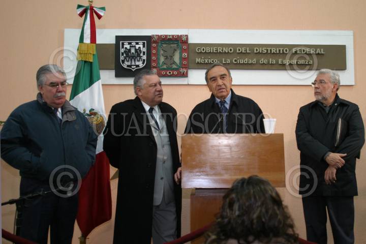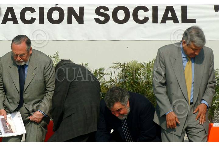 México D.F 29 Marzo 2004.- Bernardo Batiz, procurador de Justicia del D.F, Cesar Buenrostro, secretario de Obras Públicas, Alejandro Encinas de Obras y Servisios y Andrés Manuel López Obrador, jefe de gobierno del D.F durante la inauguración del Centro Femenil de Readaptación Social en Santa Martha Acatitla. FOTO: Eunice Adorno/CUARTOSCURO.COM