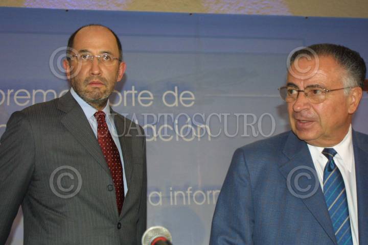 MEXICO, D.F. 26SEPTIEMBRE2005.- El ministro José Ramón Díaz y Mariano Azuela Buitron, ministro presidente de la Suprema Corte de Justicia de la Nación previo a su participación el seminario Transparencia y Acceso a la Información. FOTO: Jorge Díaz/CUARTOSCURO.COM