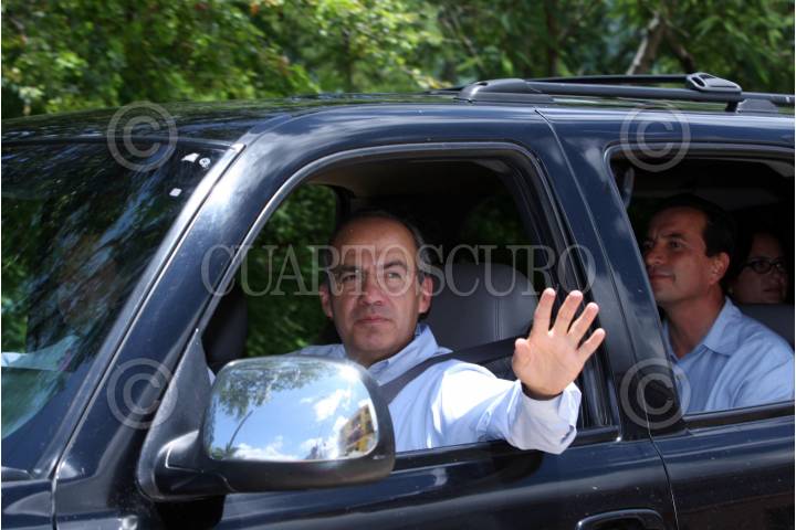 BUENAVISTA DE CUELLAR, GUERRERO., 05AGOSTO2008.- El presidente Felipe Calderón al termino de la inauguración del Bulevar de Buenavista de Cuellar que se realizó en esta entidad. FOTO: ALFREDO GUERRERO/CUARTOSCURO.COM