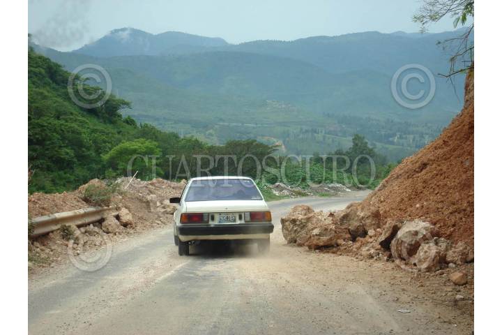 CHILPANCINGO, GUERRERO, 24JULIO2007.- Aspecto del derrumbe que se registro sobre la carretera federal Chilpancingo-Mochitlan, a consecuencia de la constante lluvia que ha caido en la entidad en los ultimos dias. FOTO:OSCAR ALVARADO/CUARTOSCURO.COM
