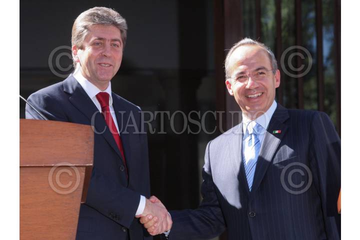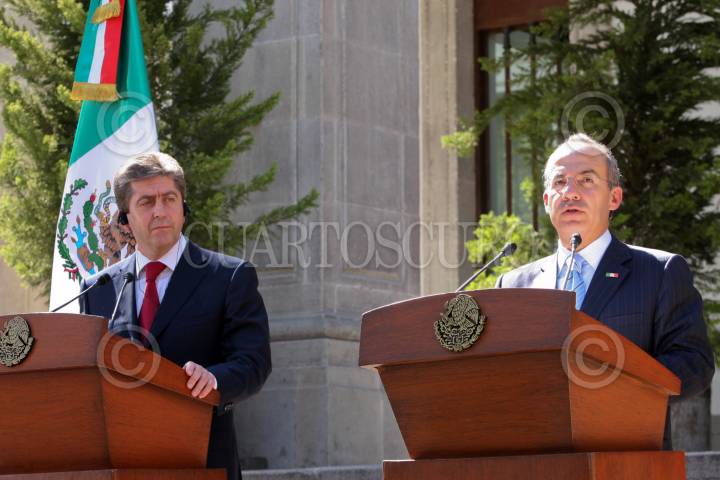 MEXICO D.F., 13NOVIEMBRE2008.- El Presidente de la Republica, Felipe Calderón Hinojosa, durante un mensaje que rindio con el Presidente de la Republica de Bulgaria, Georgi Parvanov. FOTO: ALFREDO GUERRERO/CUARTOSCURO.COM