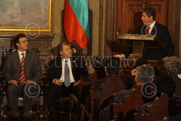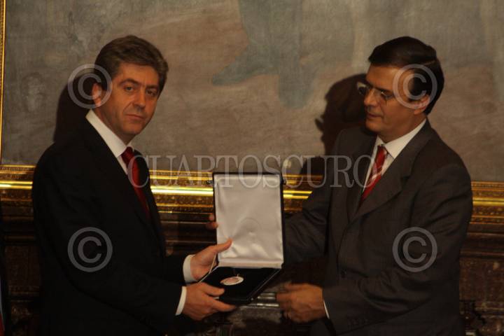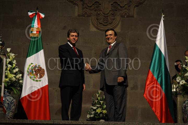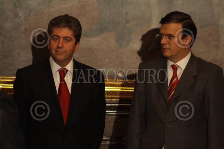 MÉXICO, D.F., 13NOVIEMBRE2008.- El Presidente de Bulgaria Georgi Parvanov fue recibido por el Jefe de Gobierno Marcelo Ebrard en la Sala de Cabildos del Antiguo Palacio de Gobierno, donde recibio las llaves de la ciudad de México u una condecoración como Huésped distinguido. FOTO: COSME RADA/CUARTOSCURO.COM