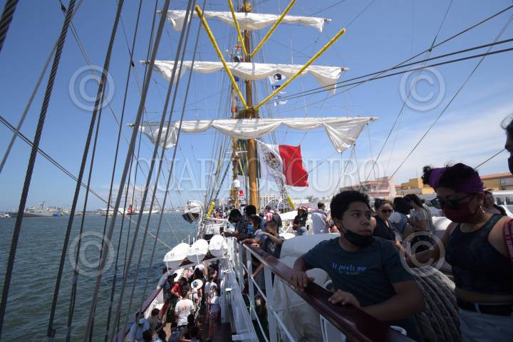 Largas filas de personas se observaron para poder subir al Buque Escuela Cuauhtémoc y el Cisne Blanco de Brasil, que participaron en el Festival de Velas Latinoamericanas 2022.