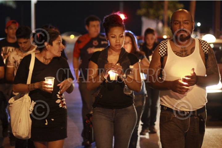VERACRUZ, VERACRUZ., 13JULIO2014.- Familiares y amigos del tatuador, José Luis Burela López, le dieron el último adiós luego de ser arrollado por la funcionaria municipal de Boca del Río y columnista de Notiver, María Josefina Gamboa. Los amigos del joven caminaron la madrugada de este domingo por las principales calles de la ciudad acompañados de veladoras, por la tarde sepultaron el cuerpo en el panteón particular. Los lamentables hechos han desatado una ola de enfrentamientos entre fracciones políticas del estado. FOTO: FÉLIX MÁRQUEZ / CUARTOSCURO.COM