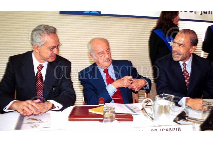 MEXICO D.F. 18FEBRERO2005.- El senador Manuel Bartlett, Fernando Serrano Migañón, director de la facultad de derecho de la UNAM e Ignacio Burgoa Origuela, jurista, durante la prentanción del libro Reformas a la Constitución de 1917 escrito por el senador priísta Manuel Bartlett. FOTO: Nelly Salas/CUARTOSCURO.COM