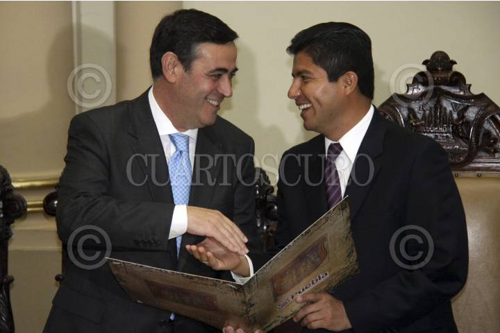 PUEBLA, PUEBLA, 27ENERO2012.- Antonio Pardo, Alcalde de El Burgo de Osma, España; durante la firma de hermanamiento entre las ciudades de Puebla y Burgo de Osma. FOTO: HILDA RIOS/CUARTOSCURO.COM