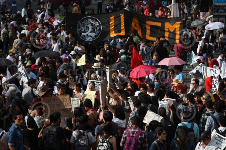 MÉXICO, D.F., 06ENERO2012.- Escuela Normal Rural de Ayotzinapa "Raúl Isidro Burgos" en el estado de Guerrero y organizaciones sociales marcharon del metro Xola hasta la Cámara de Diputados para realizar un mitin a las afueras del congreso y solicitar el esclarecimiento de los hechos del pasado 12 de diciembre en la autopista del sol. FOTO: SAÚL LÓPEZ/ CUARTOSCURO.COM