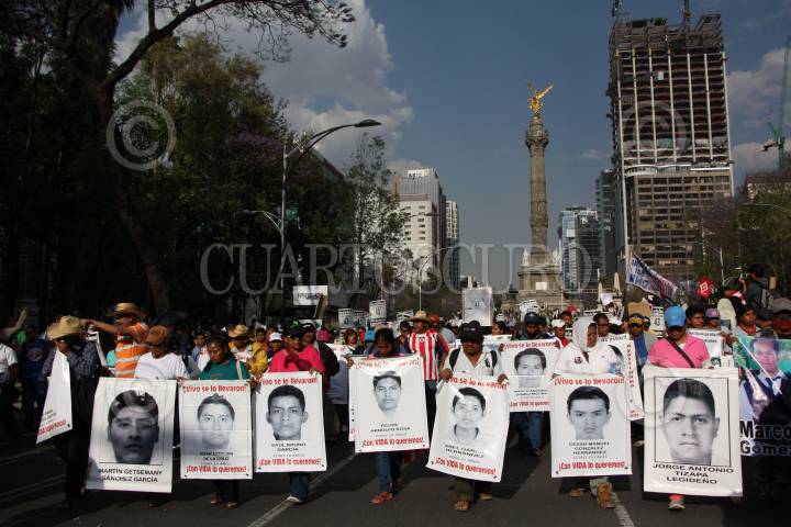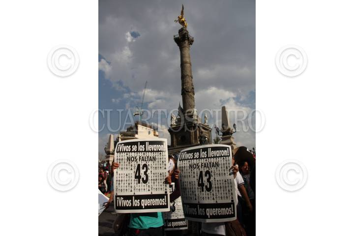 MÉXICO, D.F., 26FEBRERO2015.- Miles de menifestantes, organizaciones civiles y padres de los 43 alumnos desaparecidos de la normal rural "Isidro Burgos" de Ayotzinapa, marcharon del Ángel de la Independencia a los Pinos para exigir presentación con vida de los jóvenes. FOTO: ADRIANA ALVAREZ /CUARTOSCURO.COM
