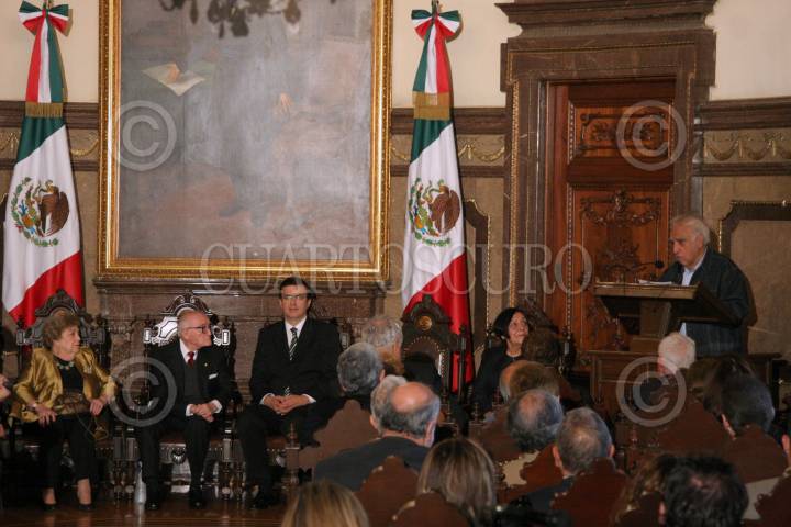 México D.F., a 21 de Noviembre de 2007.- El creador de la la historieta La Familia Burron, Gabriel Vargas recibio un reconocimiento en el salon de cabildos del H. Ayuntamiento de la Ciudad, de manos del jefe del Gobierno de la Ciudad Marcelo Ebrard Casaubon. FOTO: VICTORIA VALTIERRA/CUARTOSCURO.COM