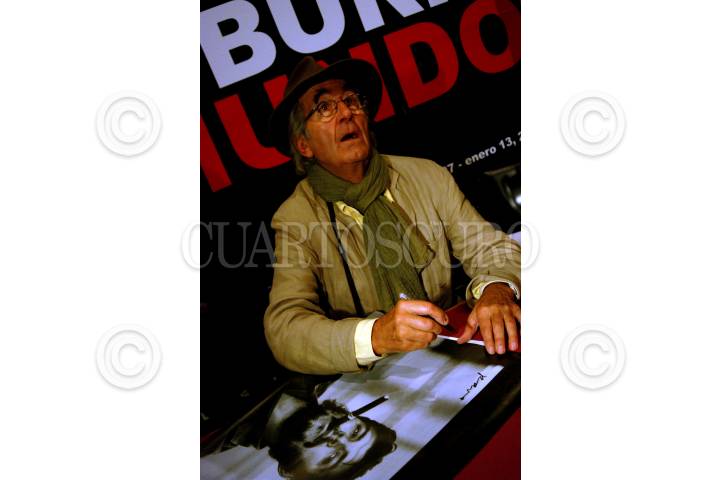 MÉXICO D.F. 14 SEPTIEMBRE2007.- El fotográfo René Burri, firma posters y libros después de la charla que mantuvo con decenas de personas en el Colegio de San Ildefonso. FOTO: CLAUDIA ARÉCHIGA/CUARTOSCURO.COM