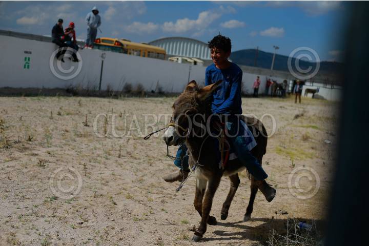 OTUMBA, ESTADO DE MÉXICO, 01MAYO2024.- En Otumba cada primero de mayo se celebra el Día del Burro por ser “el animalito más trabajador” (en el marco del “día del trabajo”) rindiendo homenaje a través de la "Feria Nacional del Burro" que en este año celebra su edición 59, el cual cuenta con exhibiciones y competencias que resaltan la importancia y versatilidad de los burros, ligados como un símbolo de trabajo, lealtad y nobleza con las raíces de la comunidad. El festival que dura cinco días (del 27 de abril al primero de mayo) comienza con un desfile de personas y automóviles disfrazados de burro quienes rodean las principales avenidas del centro. En los tres días restantes la experiencia de los asistentes se complementa con juegos mecánicos, exposiciones agropecuarias, pabellón comercial con venta de artesanías y gastronomía, además de la atracción principal el "burrodromo", donde se realizan partidos de polo sobre burro, concursos de: rebuzno, adorno y carrera de burros, para que los habitantes pueden apreciar la creatividad y cariño que los participantes muestran para exaltar su admiración por estos animales. Con estas actividades se resalta la identidad y la herencia cultural que la comunidad de Otumba ofrece. FOTO: MARIO JASSO/CUARTOSCURO.COM