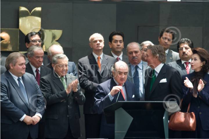 MÉXICO D.F., 29JULIO2010.- Josefina Cuevas de Serrano, Miguel Aleman, Luis Téllez, Presidente de la Bolsa Mexicana de Valores, durante la colocación histórica de certificados bursátiles por 10 mil 500 millones de pesos, a un plazo de 20 años. Estos recursos se destinarán en parte a "mayores embarcaciones y para desarrollo de los puertos mexicanos y de esta forma, logrará que México cuente con terminales portuarias competitivas y una marina mercante moderna”, afirmó el presidente del Consejo de Administración de TMM. FOTO: GUILLERMO PEREA/CUARTOSCURO.COM