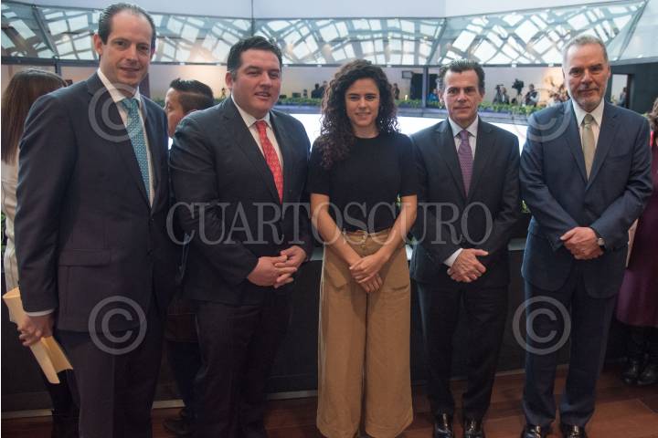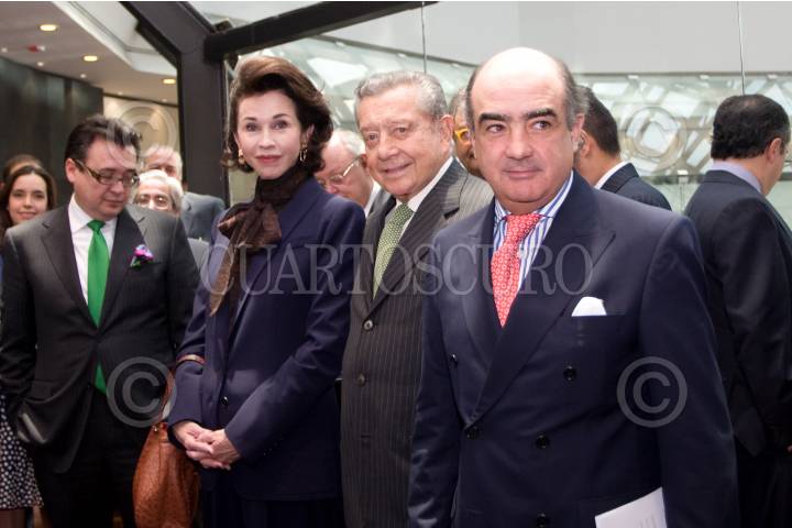 MÉXICO D.F., 29JULIO2010.- Carlos Bremer, Miguel Aleman, Luis Téllez, Presidente de la Bolsa Mexicana de Valores, José Serrano, presidente de Grupo TMM y Josefina Cuevas de Serrano, durante la colocación histórica de certificados bursátiles por 10 mil 500 millones de pesos, a un plazo de 20 años. Estos recursos se destinarán en parte a "mayores embarcaciones y para desarrollo de los puertos mexicanos y de esta forma, logrará que México cuente con terminales portuarias competitivas y una marina mercante moderna”, afirmó el presidente del Consejo de Administración de TMM. FOTO: GUILLERMO PEREA/CUARTOSCURO.COM