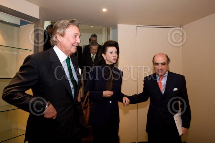 MÉXICO D.F., 29JULIO2010.- José Serrano, presidente del Grupo TMM, Josefina Cuevas de Serrano y Luis Téllez, Presidente de la Bolsa Mexicana de Valores, durante la colocación histórica de certificados bursátiles por 10 mil 500 millones de pesos, a un plazo de 20 años. Estos recursos se destinarán en parte a "mayores embarcaciones y para desarrollo de los puertos mexicanos y de esta forma, logrará que México cuente con terminales portuarias competitivas y una marina mercante moderna”, afirmó el presidente del Consejo de Administración de TMM. FOTO: GUILLERMO PEREA/CUARTOSCURO.COM