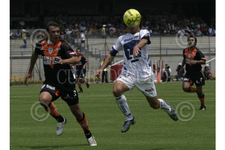 MEXICO,DF,04.MAYO,2008.- Ignacio Scocco, buscando daño a la porteria de Miguel Calero, durante el partido contra Pachuca que termino empatado cero a cero y las esperanzas de Pumas de entrar al repechaje terminaron. FOTO: PEDRO VALTIERRA/CUARTOSCURO.COM