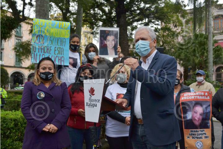 Hipólito Rodríguez, alcalde Xalapa, asistió a la develación de una placa con nombre de personas desaparecidas que fue colocada en el Parque Juárez.