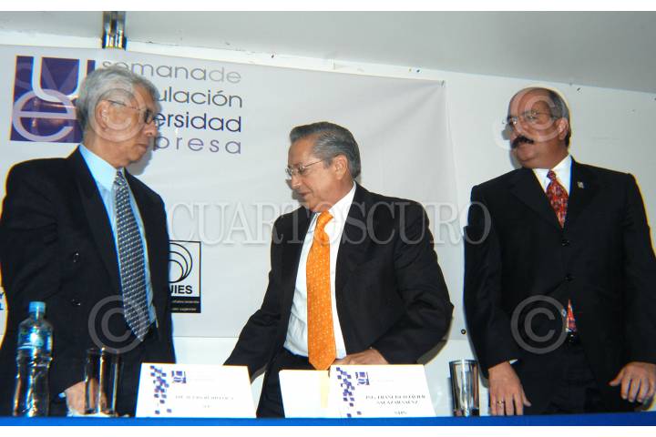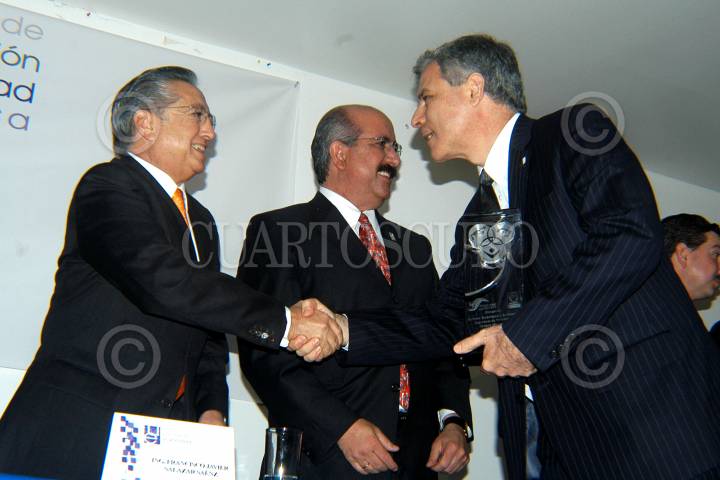 MÉXICO, D.F. 25OCTUBRE2006.- Francisco Javier Salazar Sáenz, Secretario del Trabajo y Previsión Social, Rafael López y Alberto Bustani Adem Rector de la Zona Metropolitana de Monterrey (TEc de Monterrey) durante la entrega del premio a la vinculación Universidad-Empresa. FOTO: IVÁN STEPHENS/CUARTSCURO.COM
