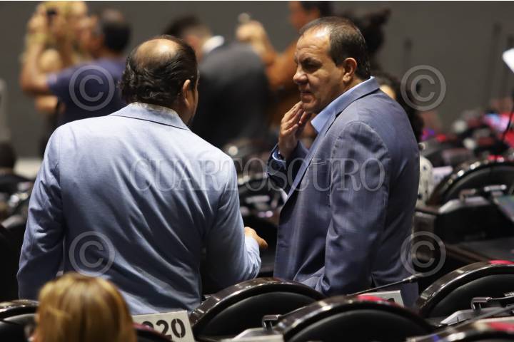CIUDAD DE MÉXICO, 17SEPTIEMBRE2025.- Federico Döring, diputado del PAN, y Alfonso Ramírez Cuéllar, diputado de Morena, durante la sesión ordinaria semipresencial de la Cámara de Diputados en la que se analizó el Primer Informe de Gobierno Federal en materia política económica y social. FOTO: MARIO JASSO/CUARTOSCURO.COM