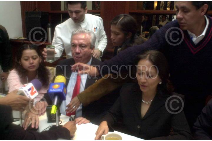 Raymundo Cárdenas y Amalia García durante el desayuno que ofrecieron a los medios para dar a conocer su postura como aspirantes a la gobernatura de Zacatecas. Criticaron la desventaja de Tomás Torres, actual subsecretario del gobierno zacatecano y tambien aspirante al puesto, ya que dicen, es apoyado por el gobernador Ricardo Monreal. FOTO: Juan Pablo Zamora/CUARTOSCURO.COM