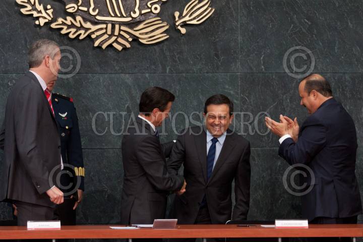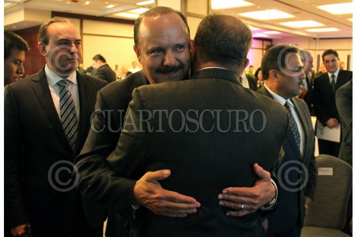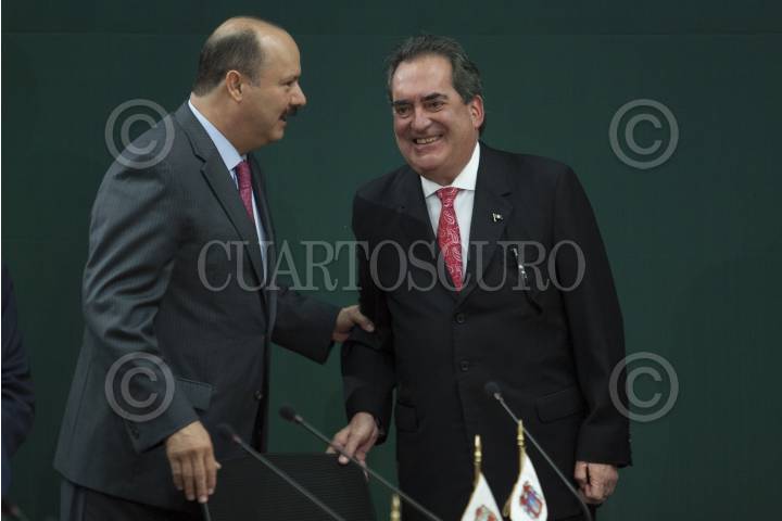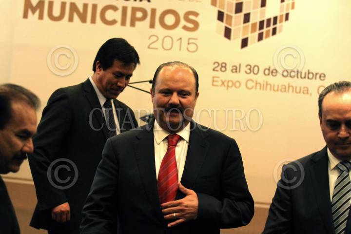 MÉXICO, D.F., 09JULIO2015.- César Duarte Jaquez, gobernador del estado de Chihuahua y Javier Alfonso Garfio Pacheco, presidente municipal de Chihuahua, recibieron la nombramiento como organizadores del Comité de la Conferencia Anual de Municipios que se efectuará en octubre en la capital del estado. FOTO: ADOLFO VLADIMIR /CUARTOSCURO.COM