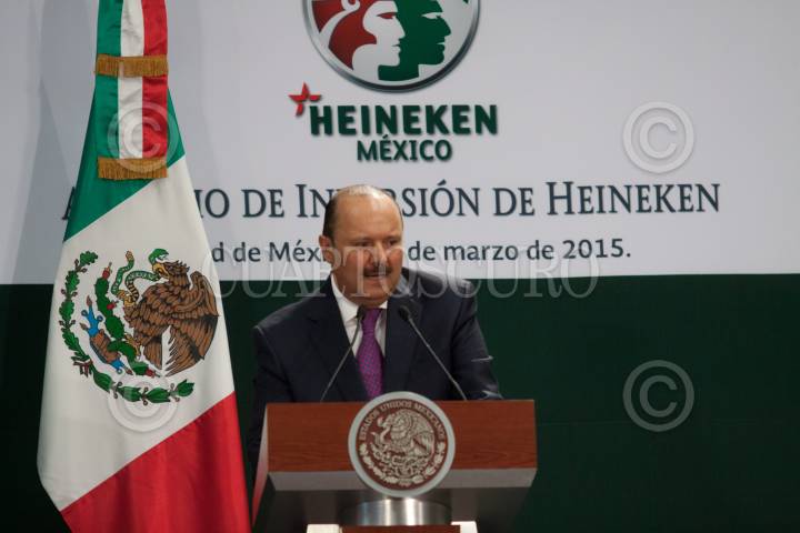 MÉXICO, D.F, 10MARZO2015.- César Duarte Jáquez, gobernador de Chihuahua, durante el anuncio de inversión de Heineken en nuestro país de 7 mil 350 millones de pesos el cual se destinará a la construcción de una nueva planta cervecera en Meoqui, Chihuahua. FOTO: MOISÉS PABLO /CUARTOSCURO.COM