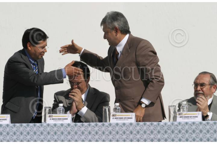 MEXICO, D.F.22NOVIEMBRE2004.- Víctor Hugo Círgo, delegado de Iztapalapa saluda a Andrés Manuel López Obrador, jefe de gobierno de la ciudad de México, durante la ceremonia de inauguración de las instalaciones de la Coordinación Territorial de Seguridad Pública y Procuración de Justicia. FOTO: Nelly Salas/CUARTOSCURO.COM