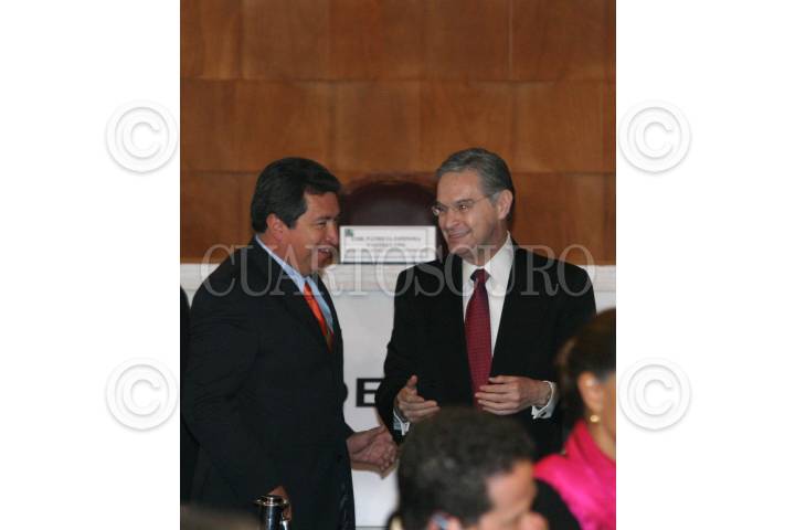 MEXICO, D.F. 09ENERO2006.- Juan Camilo Mouriño Terrazo, jefe de la oficina de la presidencia conversa con Carlos Jimenez Macías al termino XVIII Reunión de Embajadores y Cósules de México. FOTO: NELLY SALAS/CUARTOSCURO.COM