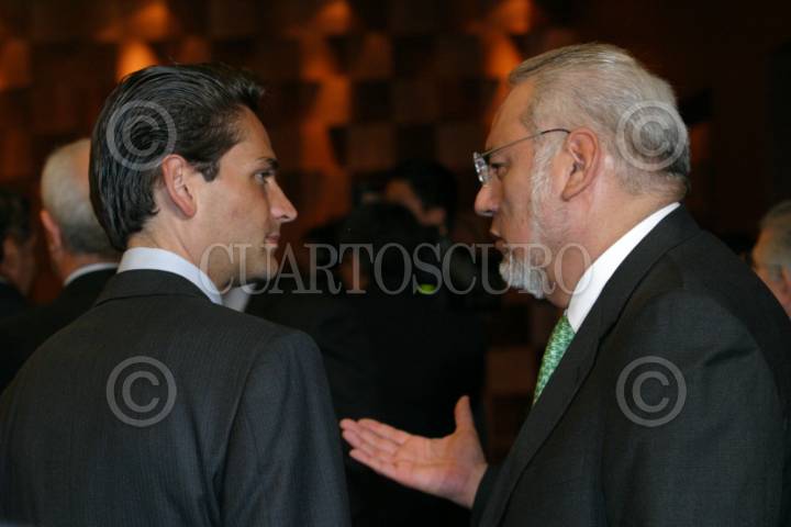 MÉXICO, D.F., 09ENERO2009.- El senador Manlio Fabio Beltrones conversa con César Duarte Presidente de la mesa Directiva de la Cámara de Diputados al término de la comida de trabajo con motivo de la XX reunión de embajadores y cosules de México realizada el salon tesoreria de Palacio Nacional. FOTO:SÁSHENKA GUTIÉRREZ/CUARTOSCURO.COM