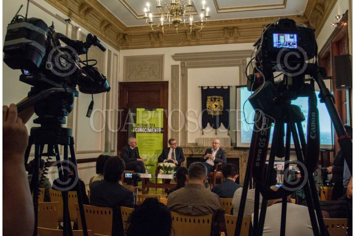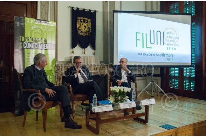 CIUDAD DE MÉXICO, 11SEPTIEMBRE2018.- Joaquín Díez Canedo, director general de Publicaciones y Fomento Editorial UNAM; Alfonso Espinoza, director de Publicaciones Universidad Nacional de Colombia y Jorge Volpi, Coordinador de Cultura UNAM, ofrecieron conferencia de prensa para presentar el itinerario y dar detalles sobre la segunda edición de Feria Internacional de Libro Universitario (FILUNI) 2018. En esta edición se reunirán 84 expositores representando a 220 sellos editoriales de universidades e instituciones de educación superior Argentina, Brasil, Chile, Colombia, Costa Rica, Ecuador, España, Estados Unidos, Perú y México. Como invitado de honor estará presente la Universidad Nacional de Colombia (UNAL). Esta edición, se llevara a cabo del 25 a 30 de septiembre, en el centro de Exposiciones y Congresos de la UNAM. FOTO: ANDREA MURCIA /CUARTOSCURO.COM