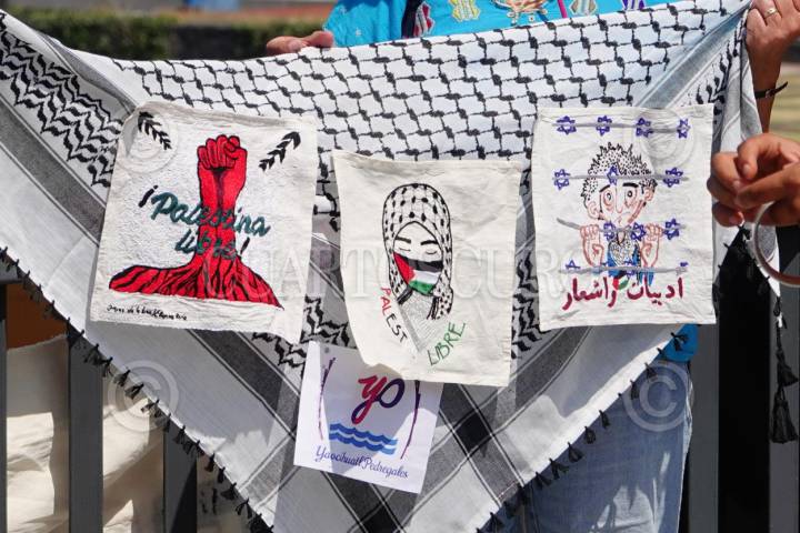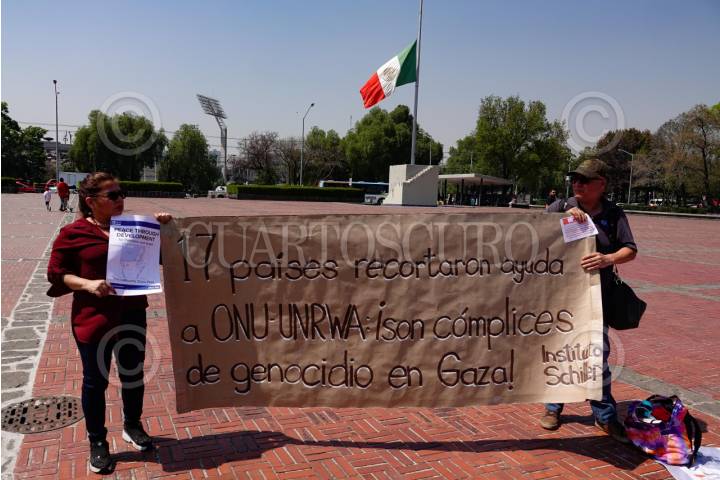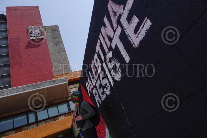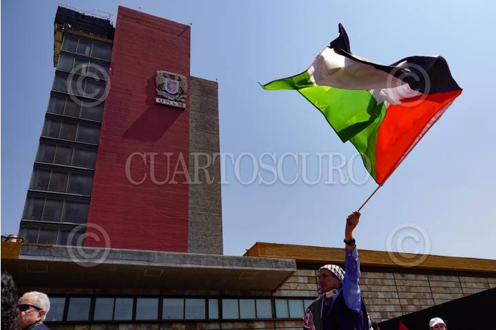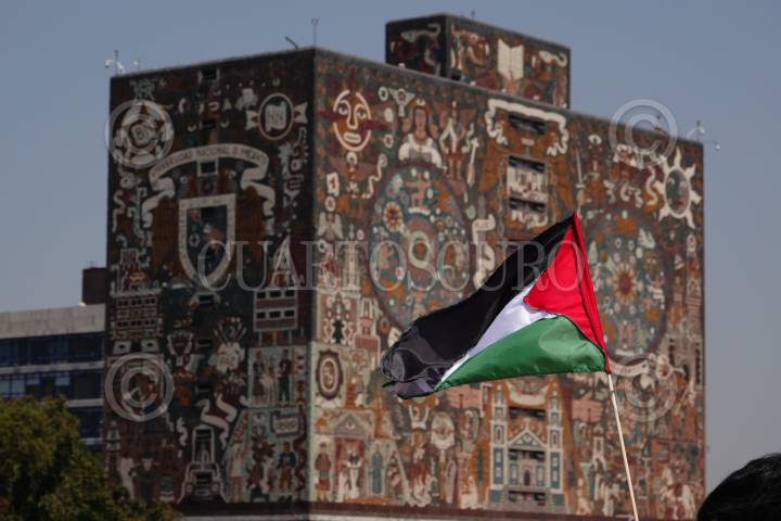 CIUDAD DE MÉXICO, 22FEBRERO2024.- Integrantes de Académicxs con Palestina contra el genocidio, realizaron una protesta en la explanada de la Rectoría de la Universidad Nacional Autónoma de México, para pedir a las autoridades un boicot activo a Israel. FOTOS: ROGELIO MORALES /CUARTOSCURO.COM